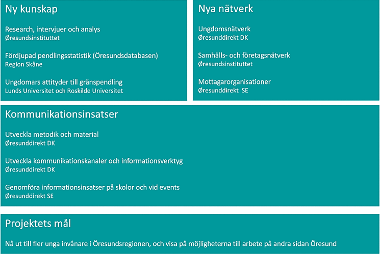 Syftet med projektet är att främja den gränsregionala arbetsmarknaden över Öresund, med fokus på unga.